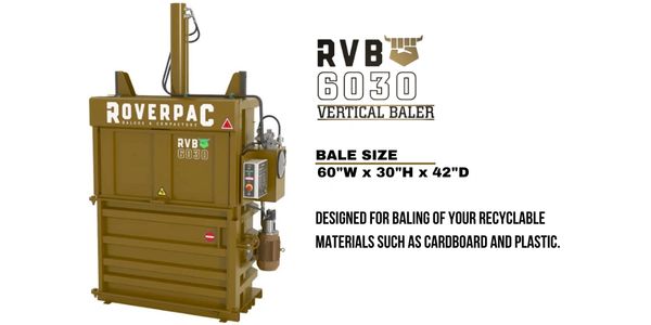 The ROVERPAC RVB6030 vertical baler boasts unparalleled compaction power, producing bales of recyclable materials up to 60 inches long, and up to 1000lbs. While the RVB6030 spends most of it's like as a cardboard baler it is more than capable of handling plastics, and a range of other materials. With its outstanding safety record, popularity, and exceptional performance, the RVB6030 is an excellent choice for businesses looking to improve their waste management practices or producers looking to market their recycling product.